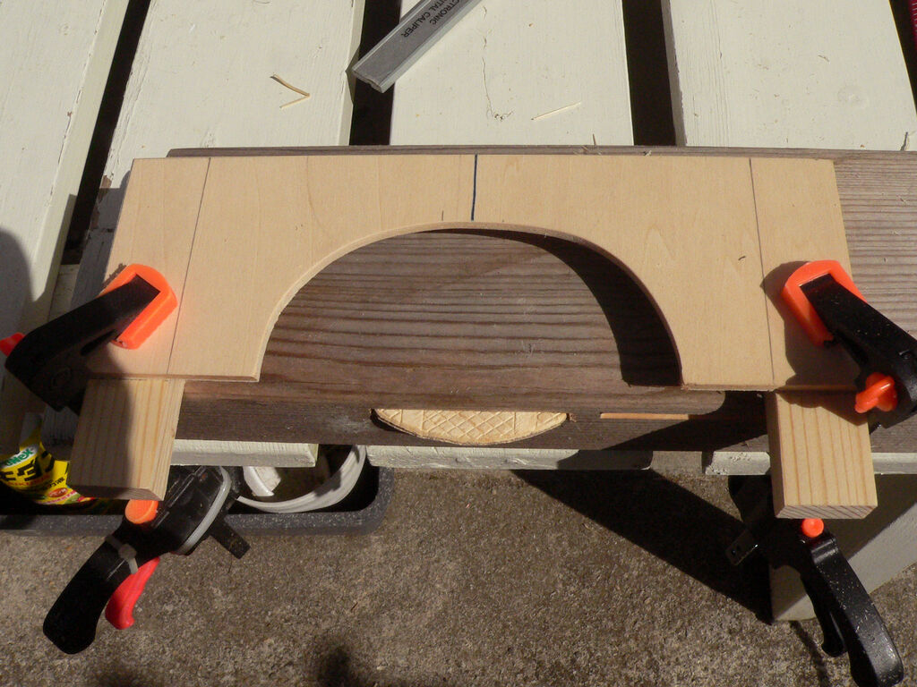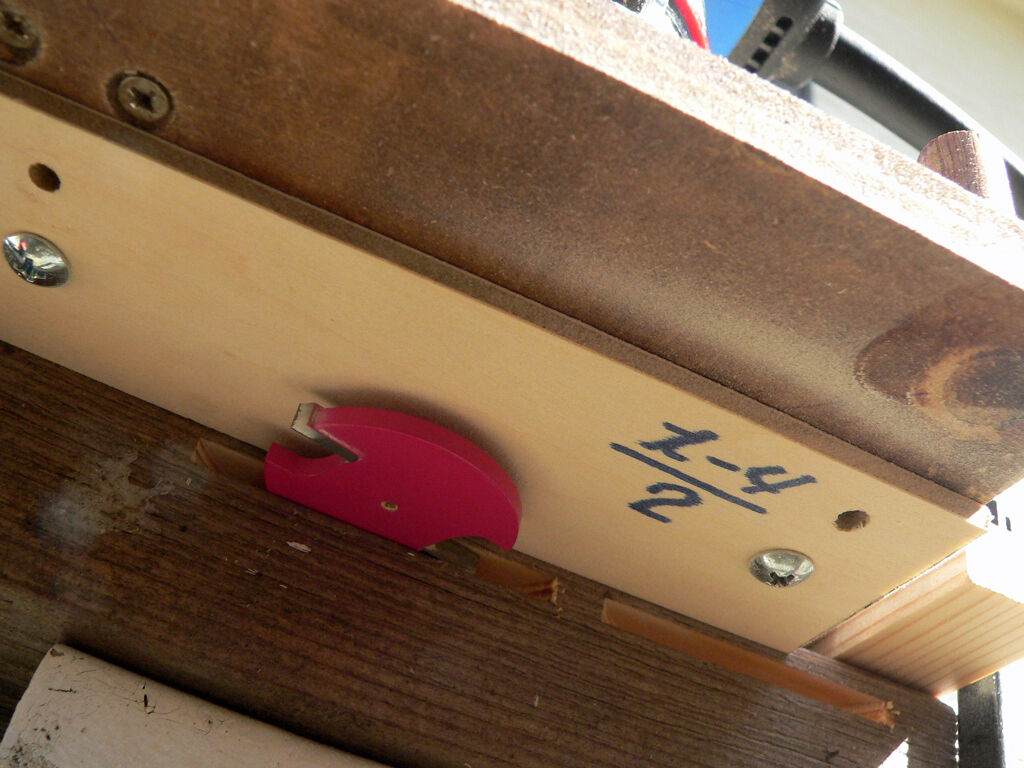 | 木工制作に於いてその出来栄えを一気に上達させるにはジグを制作して加工精度をあげることに他ならない。 今回のジグ制作はビスケット用の加工ジグである、今迄は適当に大きすぎる溝を加工していたのだがいささか情けない出来栄えであった、そこで今回制作したジグが写真の物である、まあ簡単なガイドであるが、加工状態を示すものが2枚目の写真である、ガイドに沿って左右にトリマーを振ればきっちりビスケットが嵌る溝が狙った位置に加工される。 3枚目の写真がそれでぴったりと治まる、これで完璧だと思っていましたが実際に接ぎ木を行ってみると同じ高さで溝を掘っているのに継いだ木に段差が出来てしまった、0.3mm程度だがどうやらその原因は切削の切りくずがジグに薄い膜のように張り付いて高さを狂わせた様である。 勿論母材の反り、捻じれも影響するのだが、まあ今度行う時は丹念に掃除しながら使う事にしましょう。 加工スピードは今迄の10倍早く位置も正確に出来るので今迄の苦手意識は霧散した。 |
