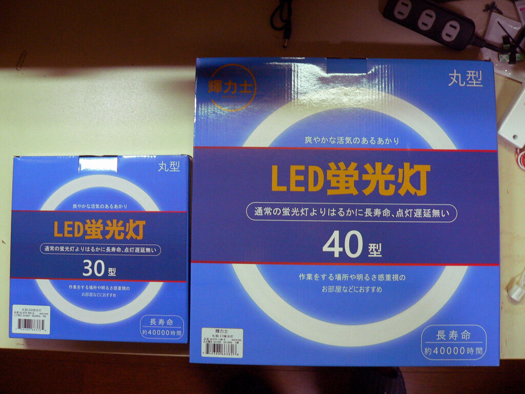| 蛍光灯のLED化第二弾です。 Amazonで購入した丸形のLED、40+30型の2本組ですが3000円と結構な値段がします。 台所の蛍光灯本体をLEDの物と交換しましたが6畳用で2200円でした、おまけにリモコン付きで明るさは勿論色味も調整できる優れものです、家内に言わせるとビックリするほど小さいけど実使用には全く問題が無いと。 それならこちらもその様にすればと思うのですがこちらはダイニング用でその昔流行った真ん中に吊り下げ用の電球を取り付けられるようになった特殊な構造、今では全くお目にかかりませんが当時の流行りでした、と言う事で今回も2個の安定器とグロースターターを取り外しました。 30型はそうでもないのですが、40型はかなり大きな安定器とグロースターターも金属で覆われた物が使われており、重量級の照明もLED化するととても軽量化されます、LED照明があり得ないほど安いのも小型で軽量、材料費も梱包、輸送費も全て安価になるのでしょう。 点灯した状態の写真ですが、白昼色を選んだのですが緑と青が可成り強めでホワイトバランスに苦労しました、そして余りにも明るいので光っている部分を暗くして、暗く潰れている所を持ち上げましたがこれは難しい調整ですね。 これも昔流行ったHDRと言う手法で露出を絞った写真と逆に開いた写真を合成して明るい所も暗い所も写す事が出来るようですがその合成ソフトが有料で結構な価格で販売されており私は買えませんでした。 残るは和室の吊り下げ式と台所の天井、そして子供部屋でそれぞれ残っていますがどうしたものか思案中です。 |